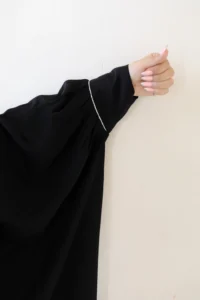 مانتوعبایی مدل یسنا الیزه پارچه کرپ الیزه گرم بالا بدون آبرفت فری سایز مناسب سایز ۳۸ تا ۵۶ دارای بند