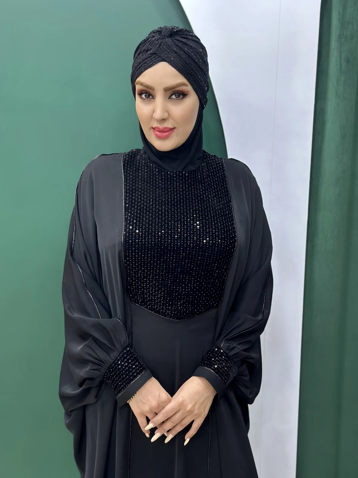 مانتوعبایی مزونی مدل ساغر دو تکه شمال پیراهن آستین بلند زیری و رویه جلوباز جنس پیراهن : کرپ فلور جنس