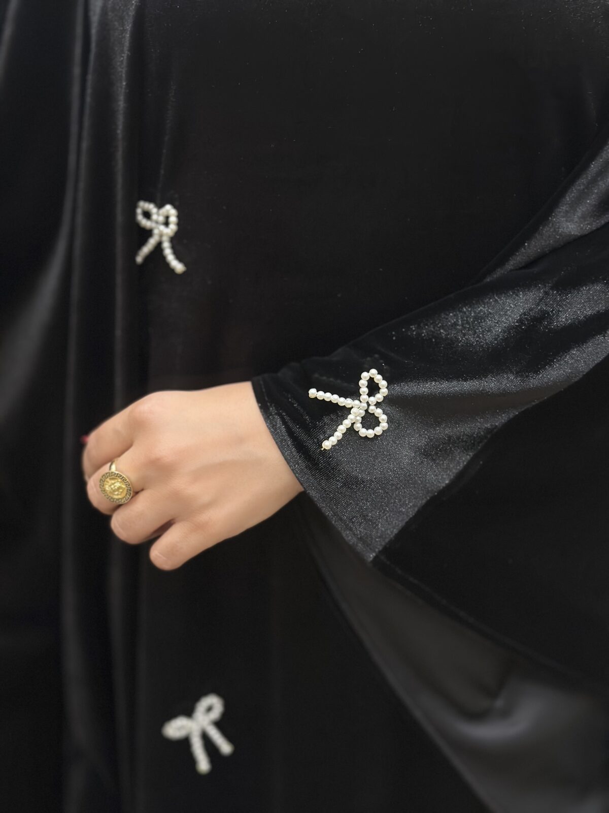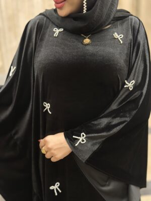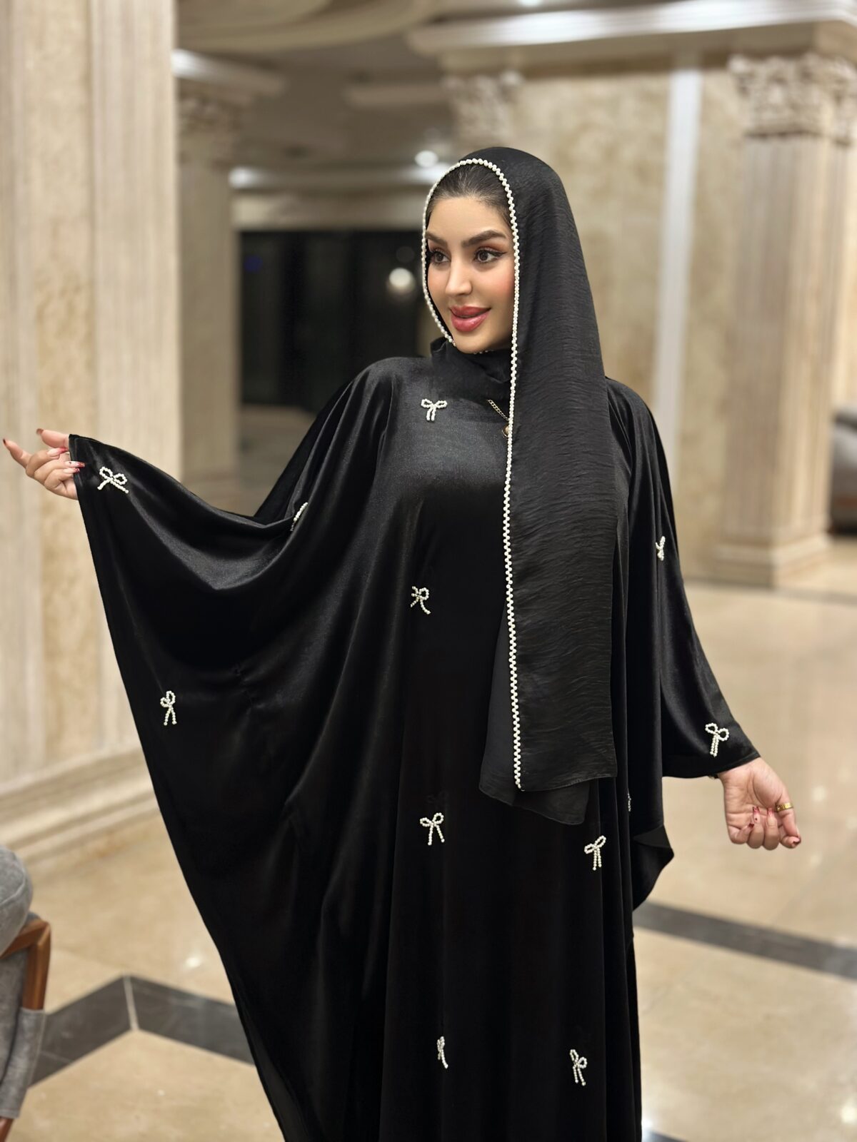 مانتوعبایی مزونی مدل ساغر دو تکه شمال پیراهن آستین بلند زیری و رویه جلوباز جنس پیراهن : کرپ فلور جنس