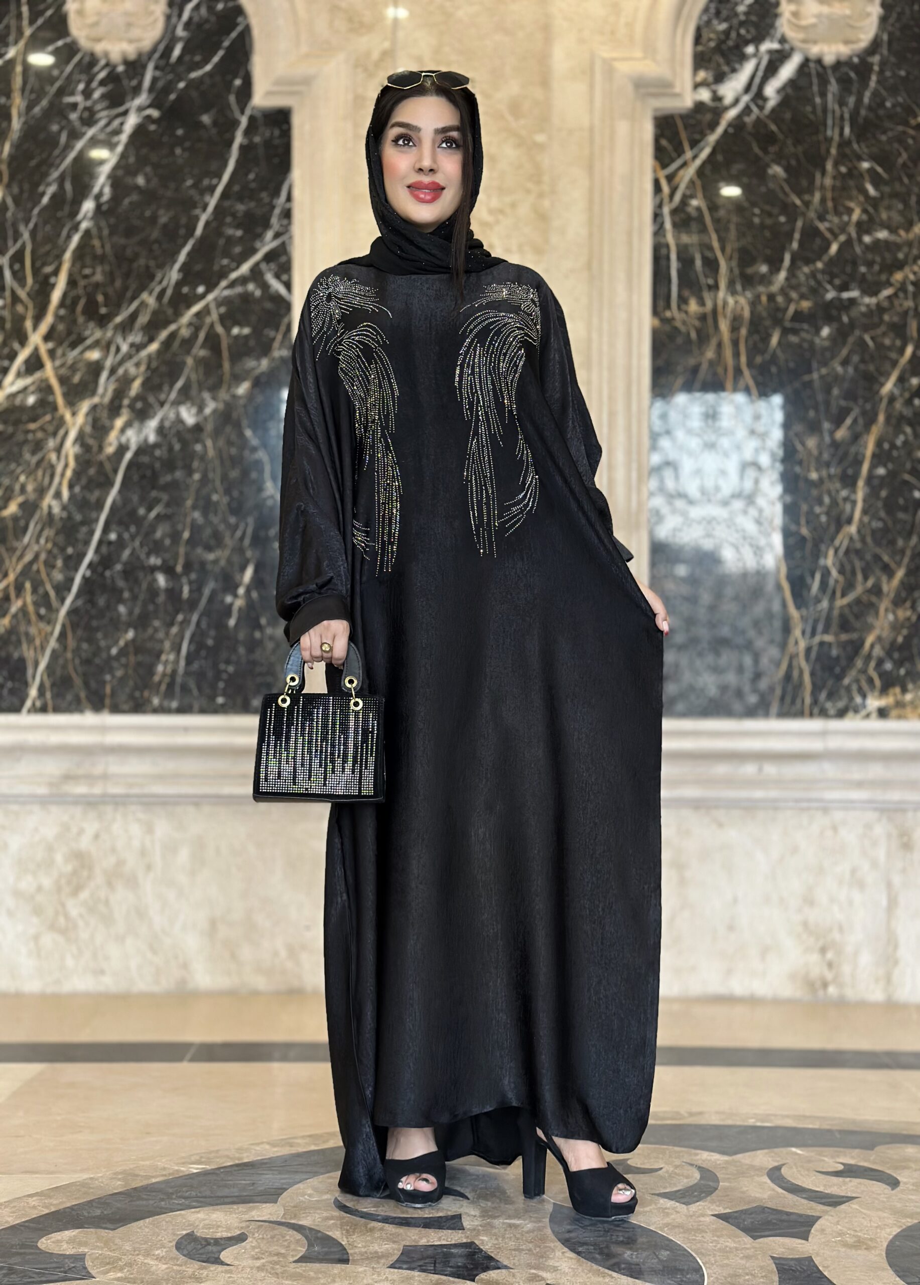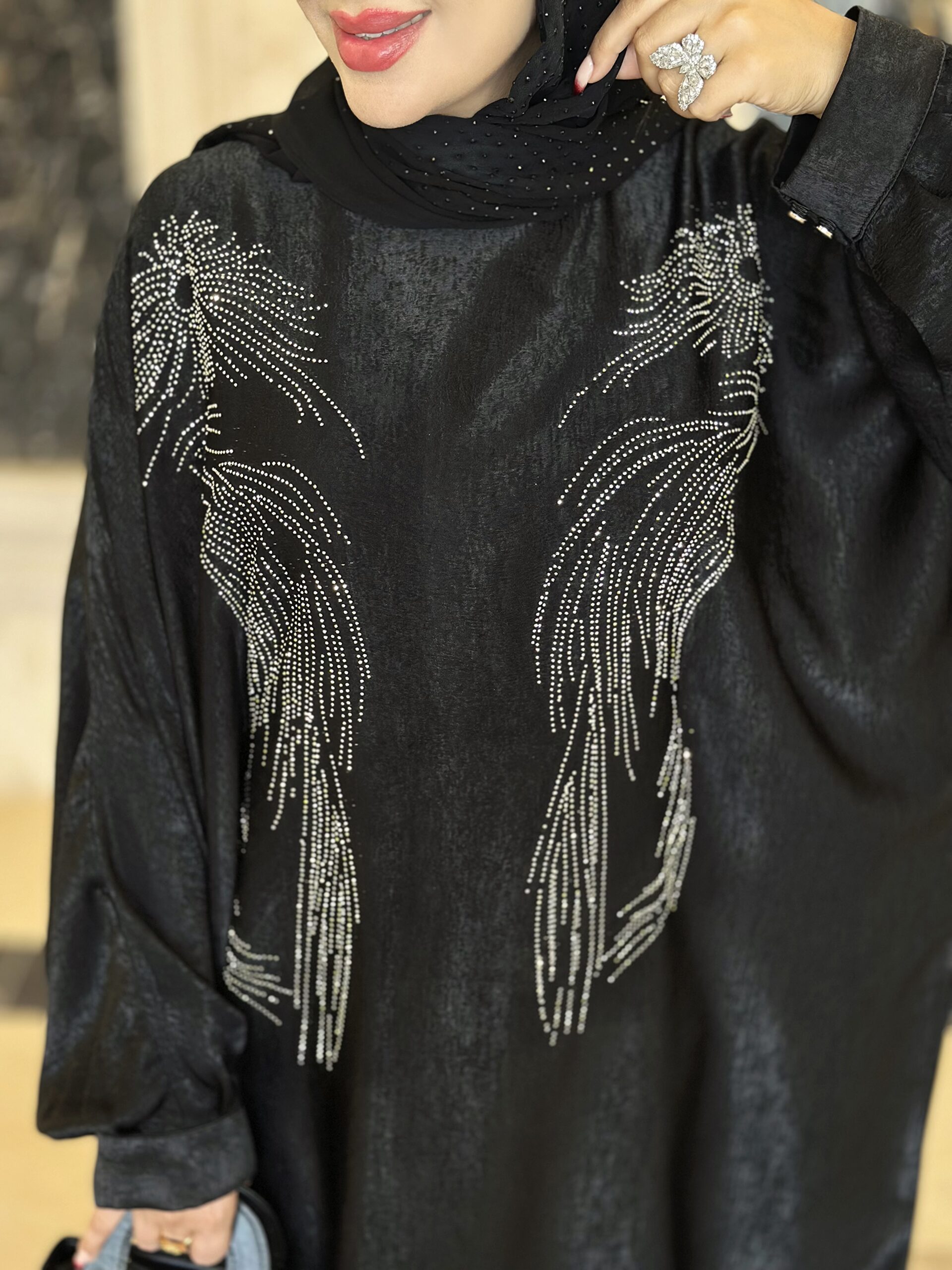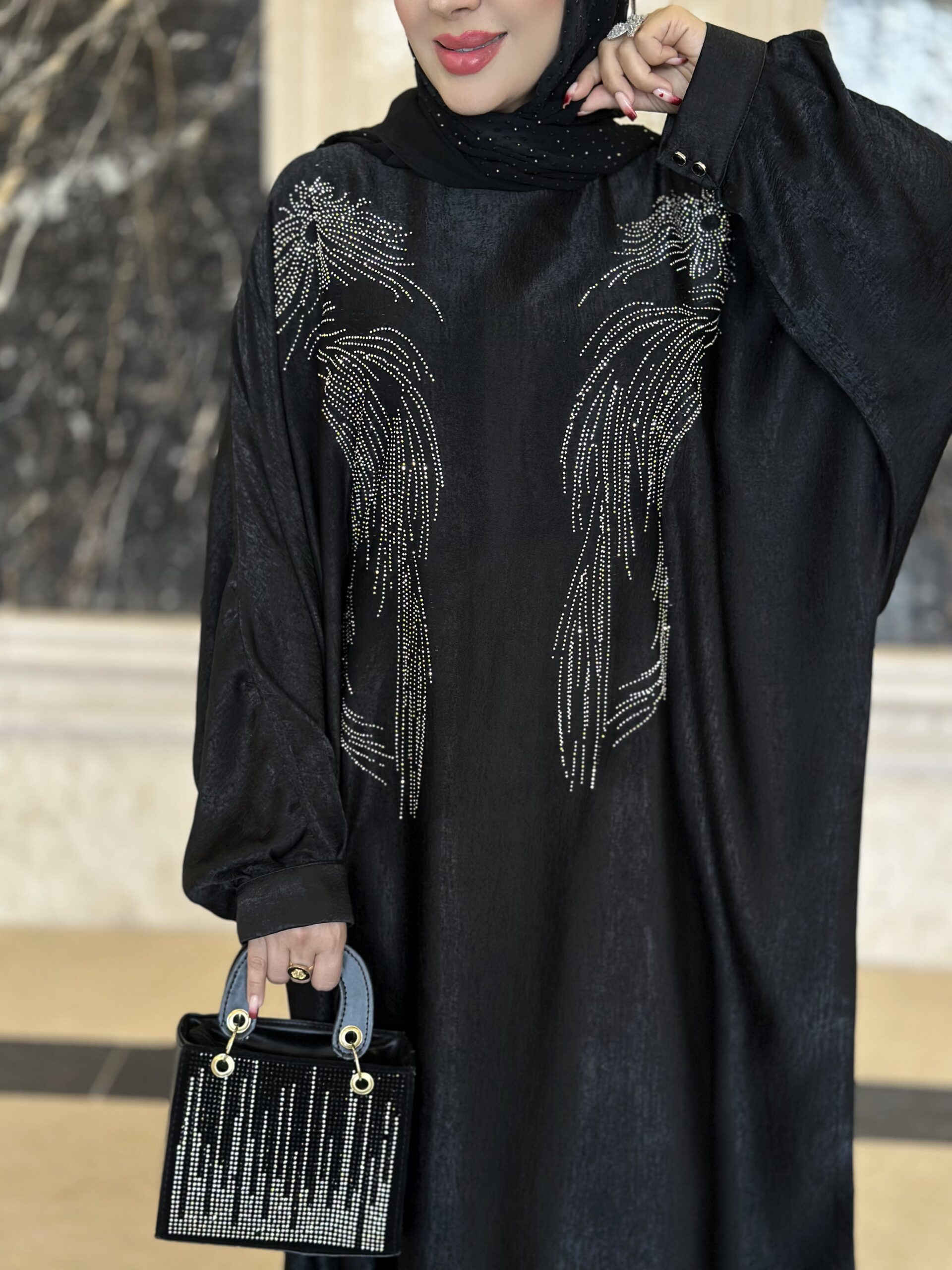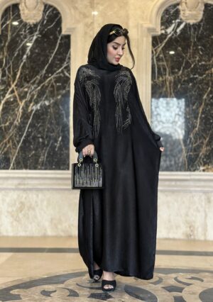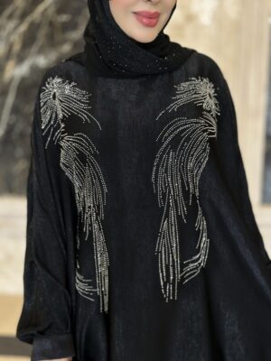 مانتوعبایی مزونی مدل ساغر دو تکه شمال پیراهن آستین بلند زیری و رویه جلوباز جنس پیراهن : کرپ فلور جنس