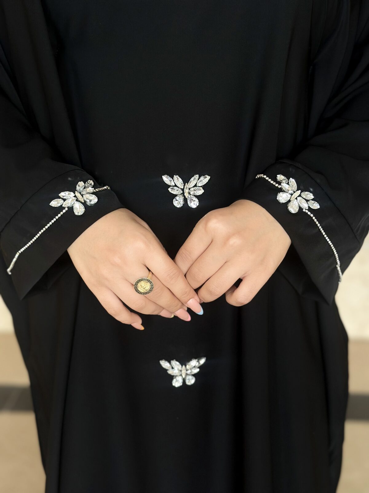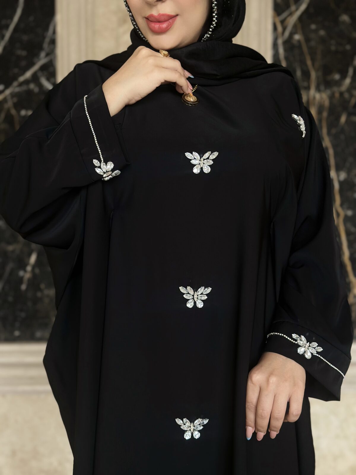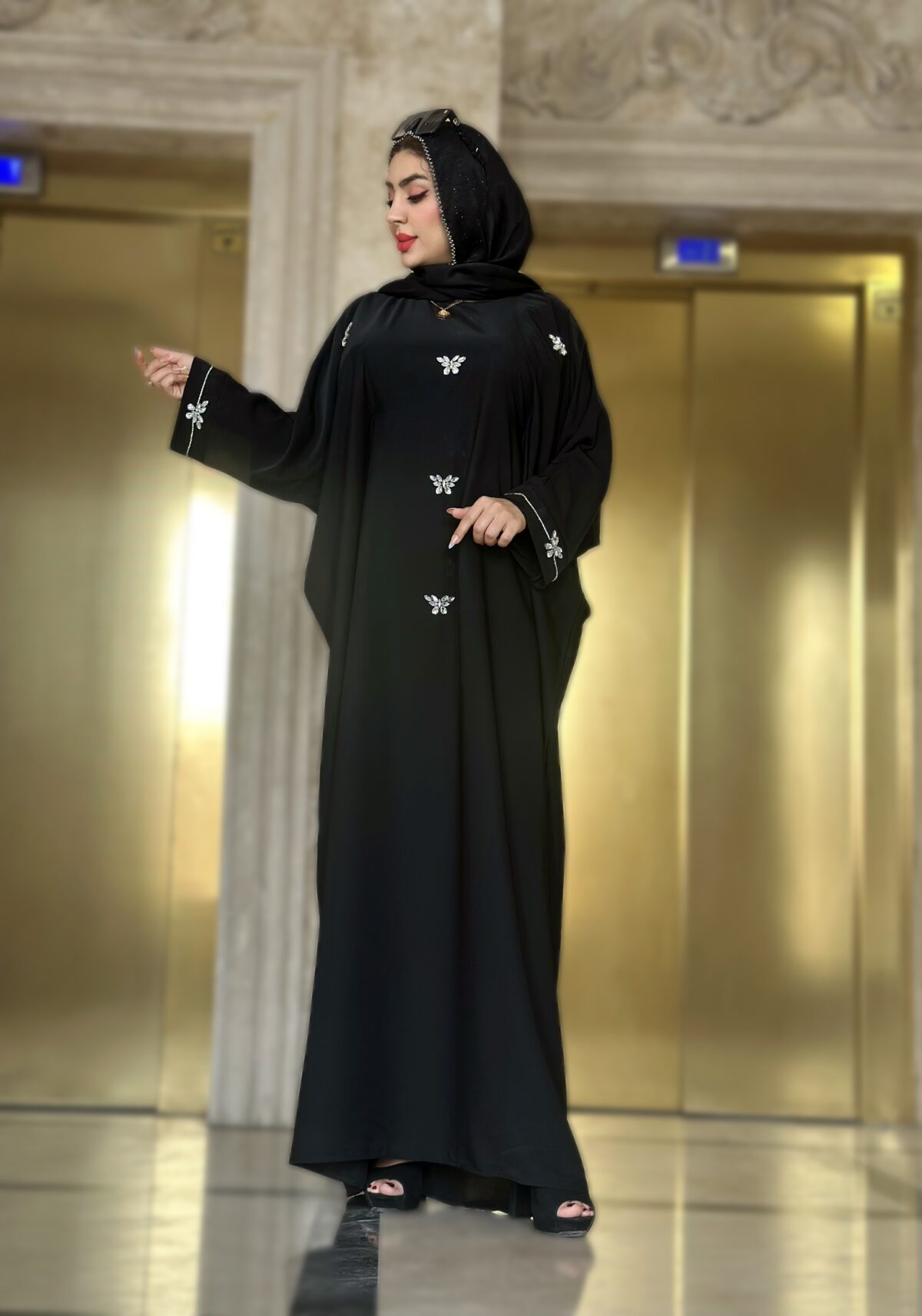 مانتوعبایی مزونی مدل ساغر دو تکه شمال پیراهن آستین بلند زیری و رویه جلوباز جنس پیراهن : کرپ فلور جنس