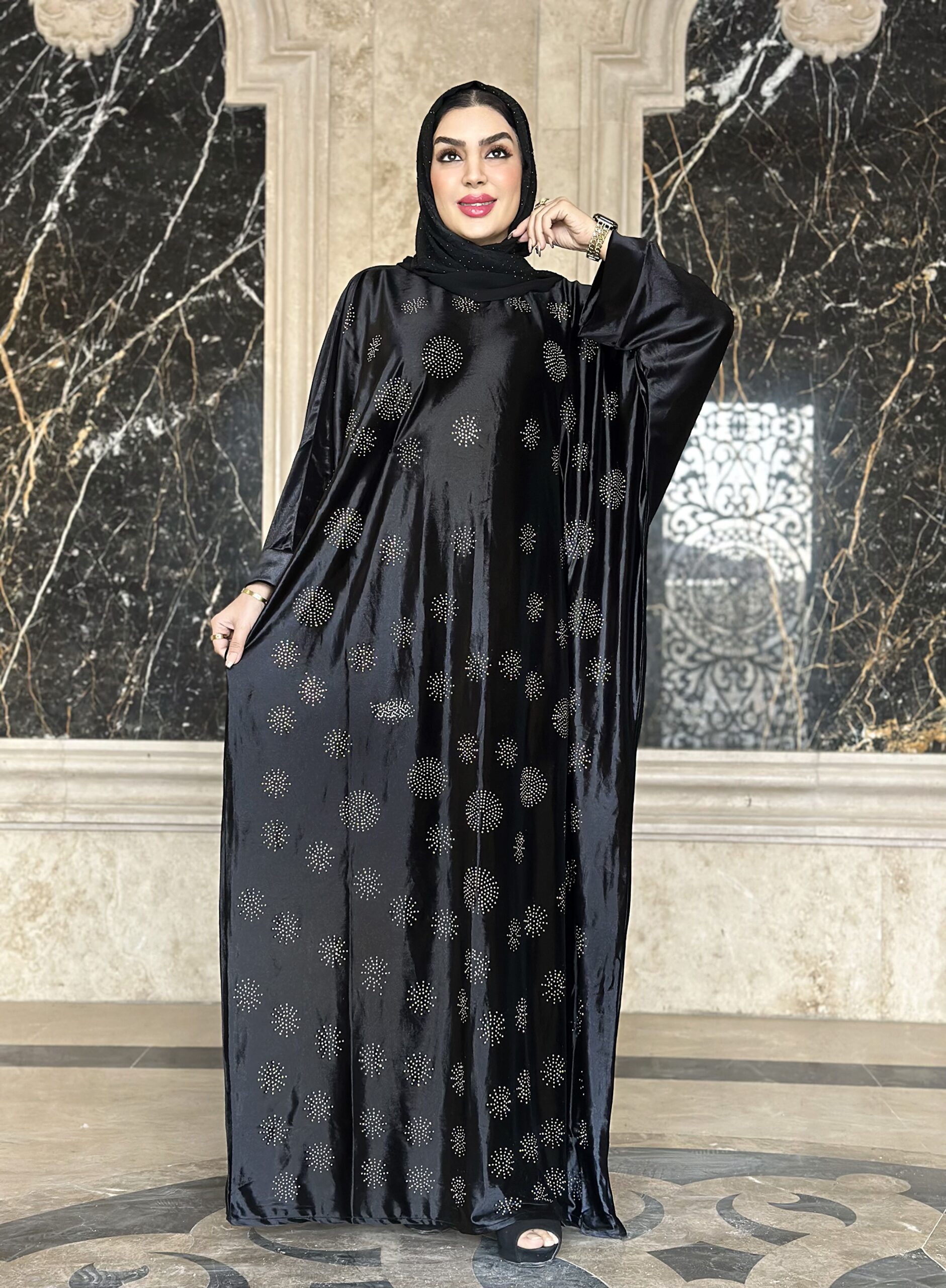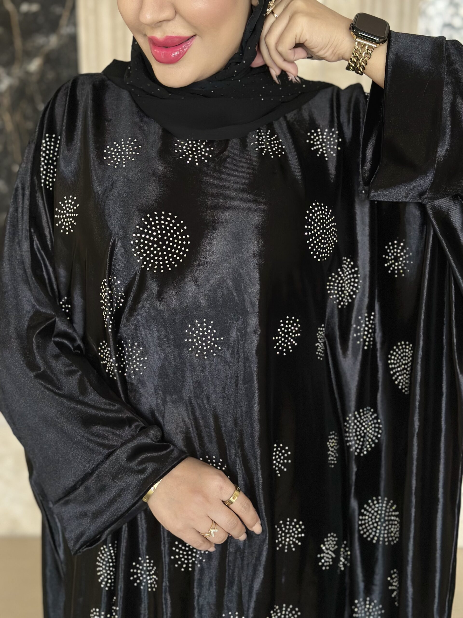 دسته عبا مجلسی مانتوعبایی مجلسی مدل شایسته پارچه کرپ الیزه گرم بالا دارای بند تنظیم از داخل خرجکار منجوق دوزی