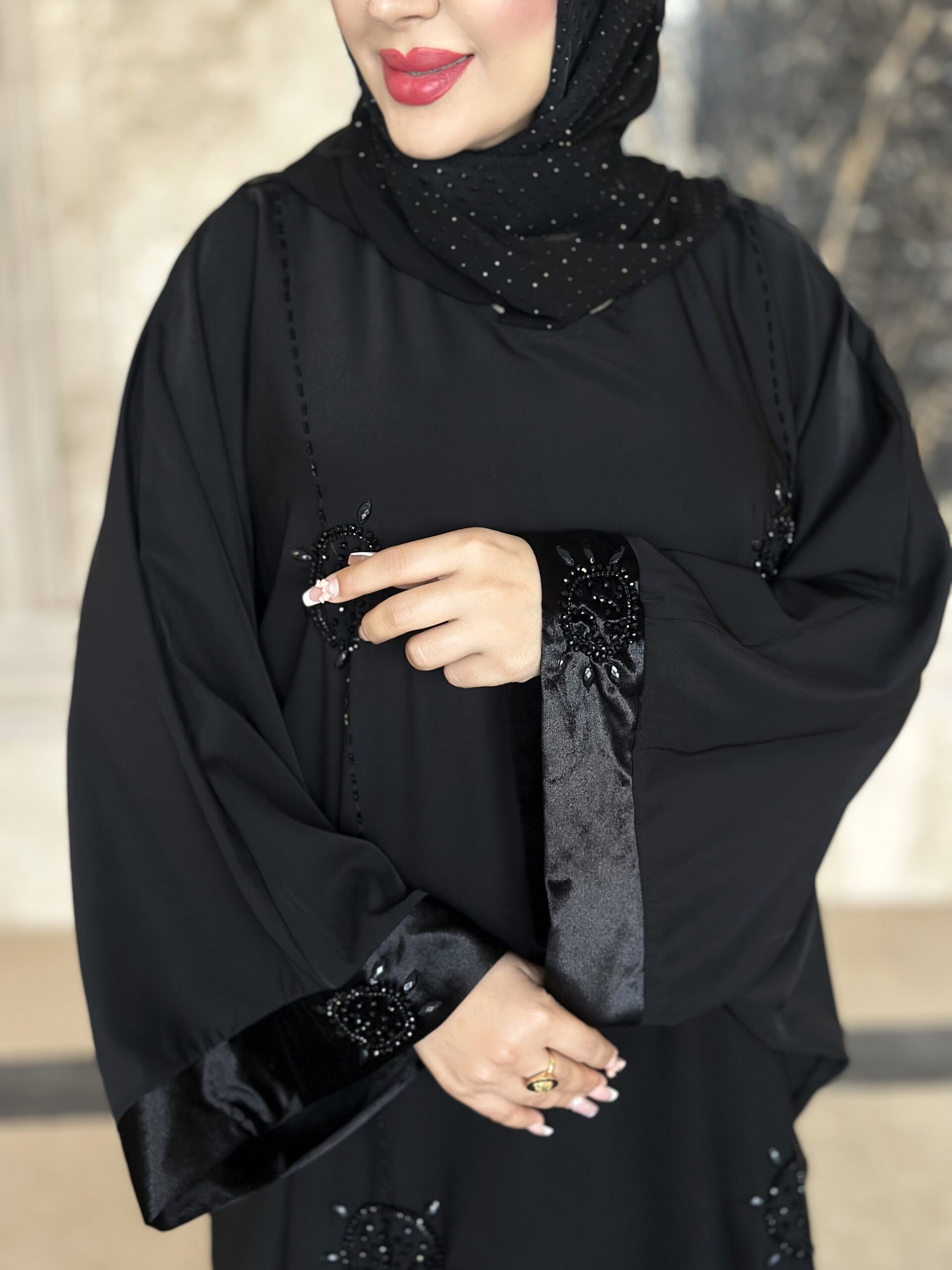 سر آستین مخمل و جواهردوزی کار شده