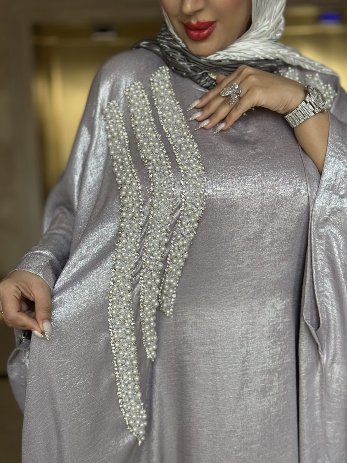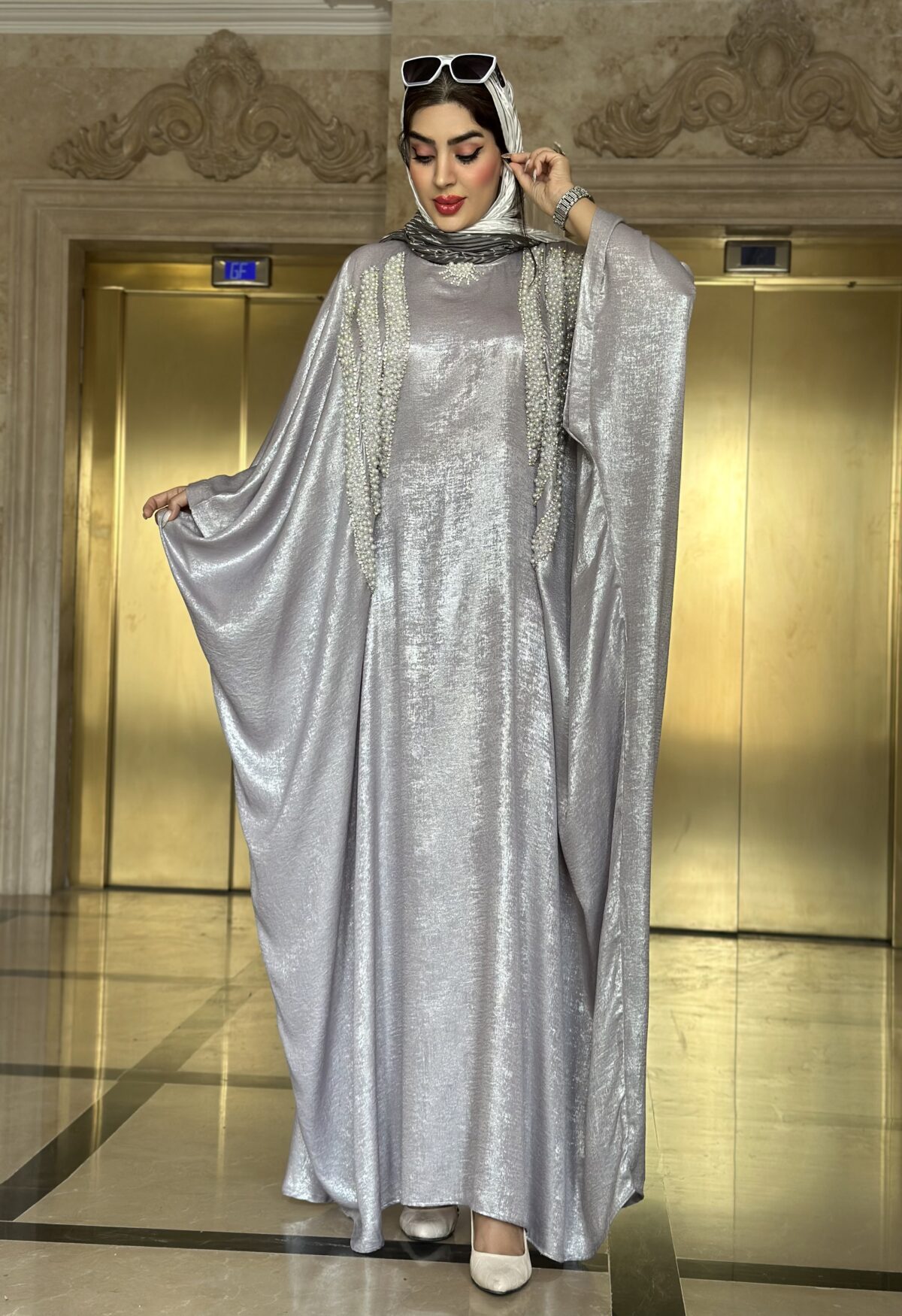 دسته عبا مجلسی مانتوعبایی مجلسی مدل شایسته پارچه کرپ الیزه گرم بالا دارای بند تنظیم از داخل خرجکار منجوق دوزی
