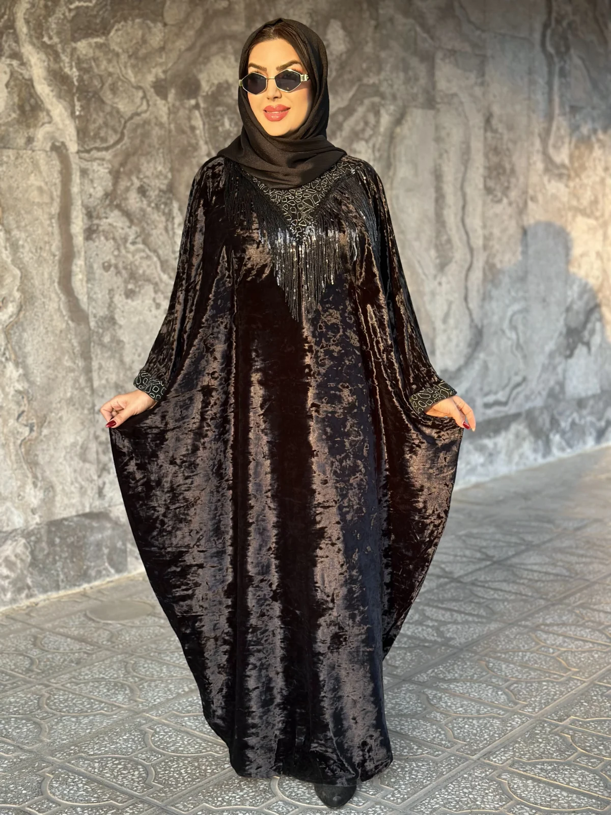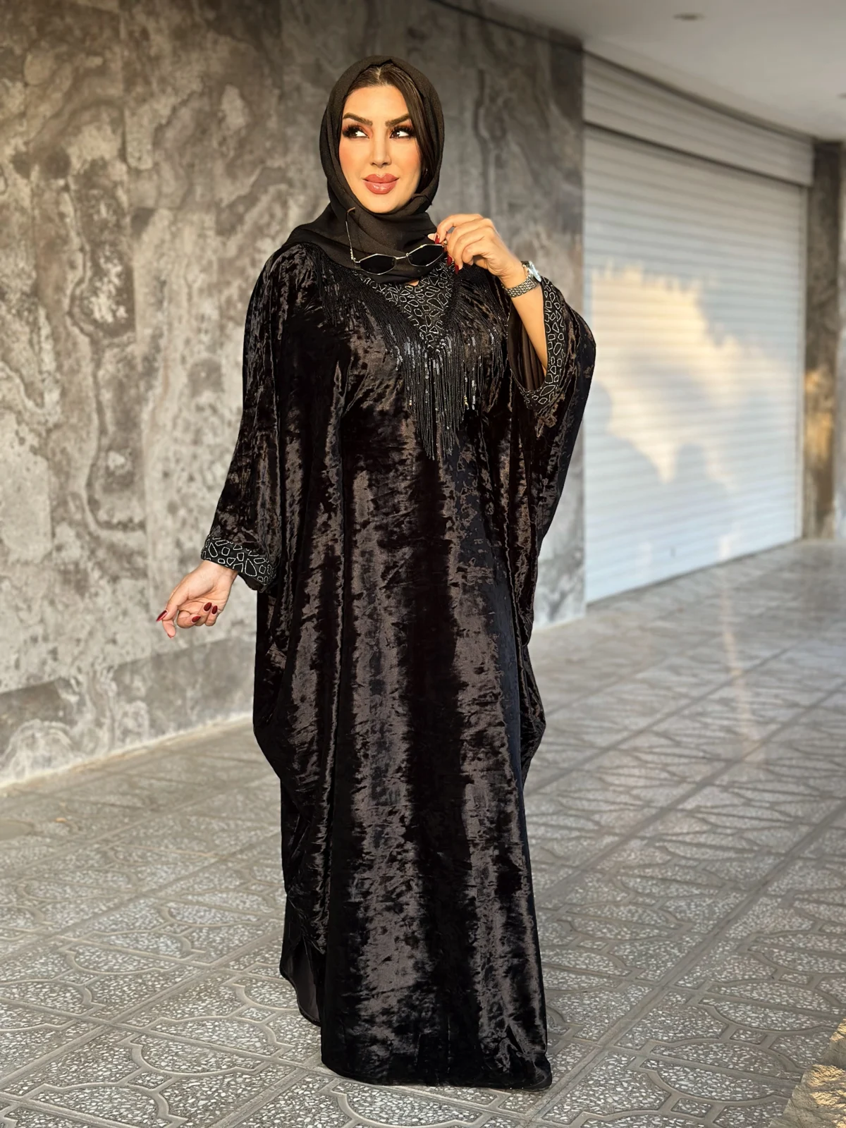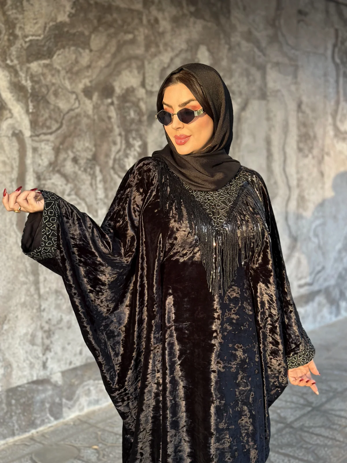 مانتوعبایی مدل یسنا الیزه پارچه کرپ الیزه گرم بالا بدون آبرفت فری سایز مناسب سایز ۳۸ تا ۵۶ دارای بند